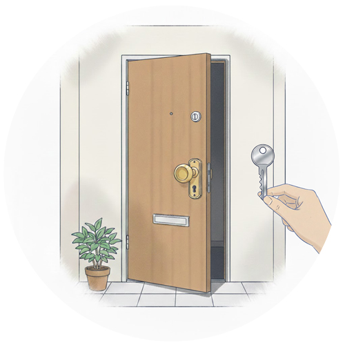 ○ 検査時に、お渡ししていた住宅の鍵(2本)を返還してください。また、倉庫の鍵(2本)があるところは、倉庫の鍵も返還してください。