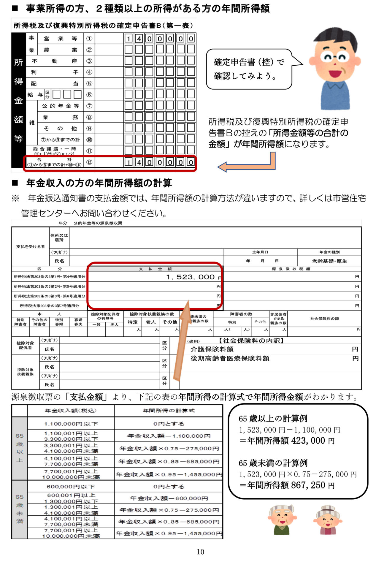 ※ 年 金振込通知書の支払金額では、年間所得額の計算方法が違いますので、詳しくは市営住宅管理センターへお問い合わせください。